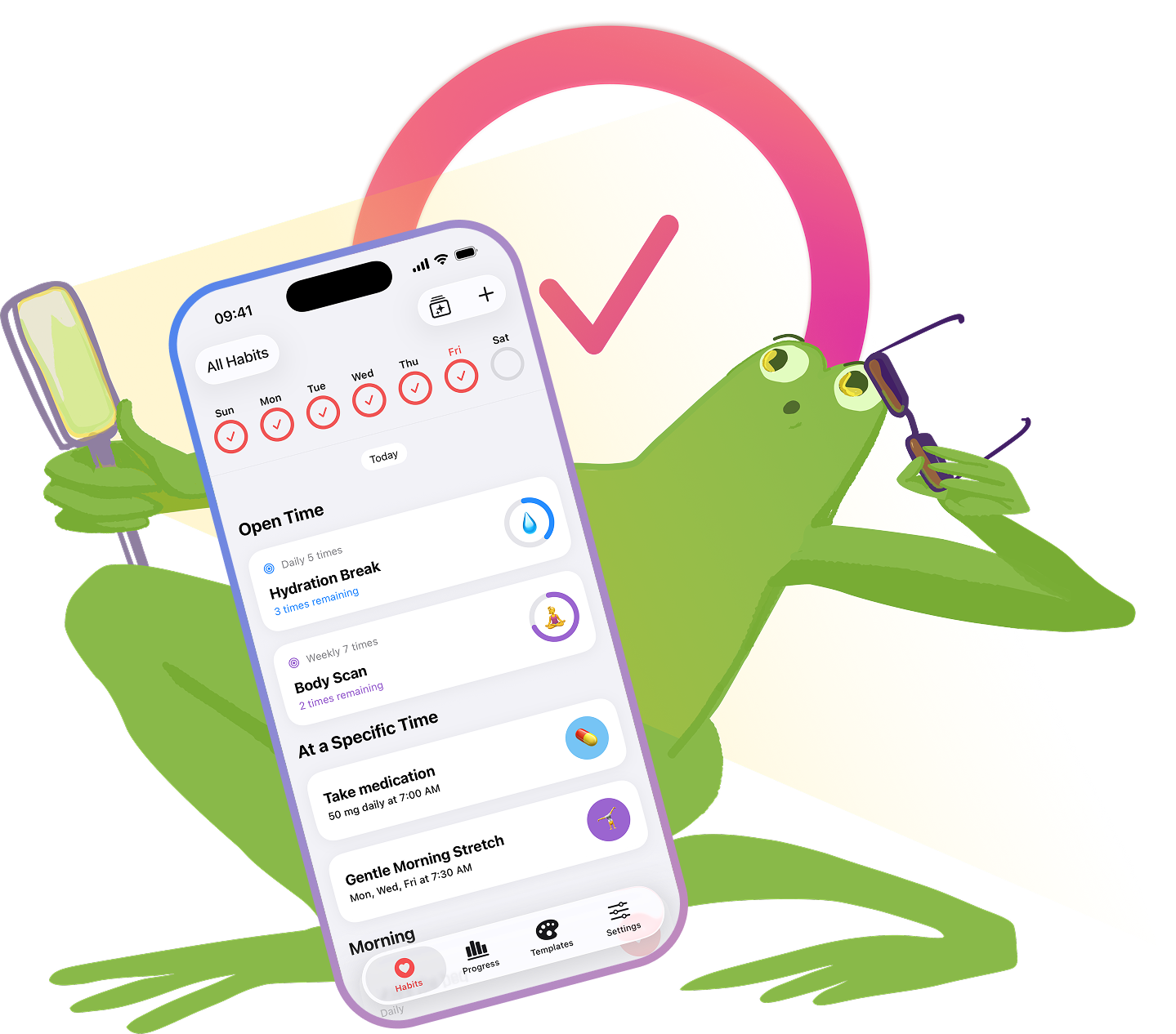 We truly believe that joy resides at the center of our being and motivates us to self-improve. As a team we want to go beyond just another application. That's why we developed the best ever habit tracker for frogs. It’s likely it would work well for humans too!